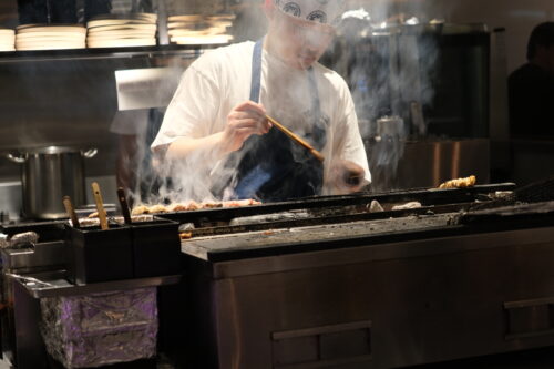 カウンターからはガッツリ焼きの様子が見えますよ(どうしても匂いがつくのでその準備はしておいた方がいいかも…)