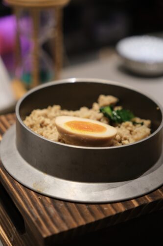 最後の締めは半熟卵も最高な鶏の釜飯…。